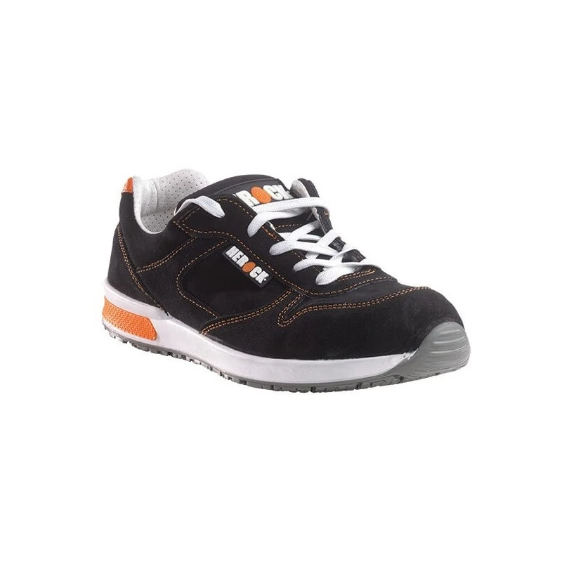 Chaussure de sécurité basse type basket en Daim doux modèle HEROCK Spartacus, avec embout coqué acier et semelle intermédiaire en kevlar non métallique anti-perforations, semelle intérieure anatomique, antistatique et amovible.