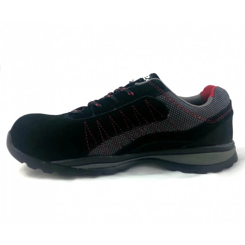 Basket de sécurité légère avec tige cuir croute velour noir sur toile grise normes EN ISO 20345 S1P SRA HRO