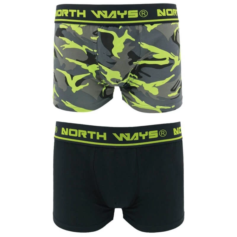 Vendu par lot de 2 boxers (1 noir/vert + camo vert ou 1 Noir/orange + camo orange)