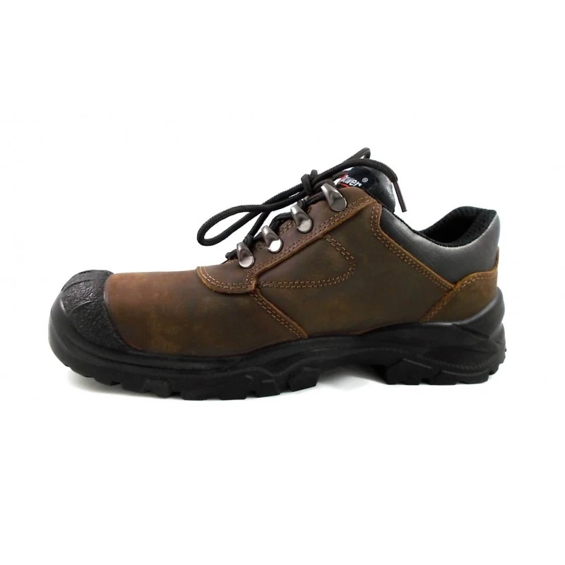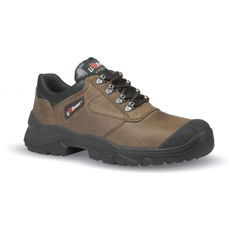 Tige en cuir pull up souple hydrofuge avec un sur-embout renforcé Coque de protection en acier résistance 200 joules Semelle anti-perforation acier et semelle d’usure en PU Coloris : Marron Pointure mixte du 35 au 48 Poids : 639 grammes pour un 42 Chaussure de sécurité basse renforcée modèle BC20483 Saba de marque U Power