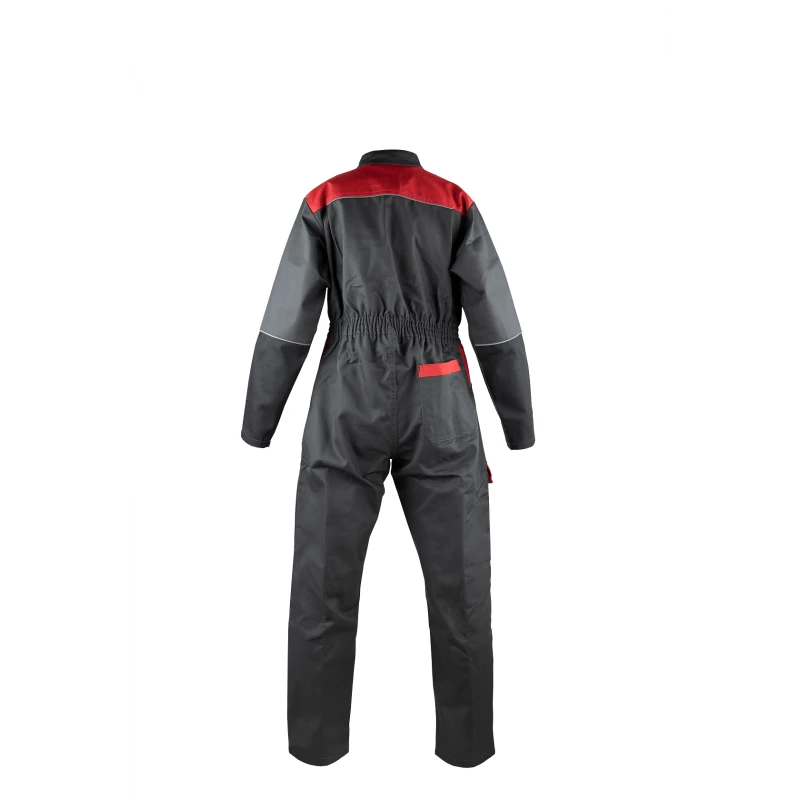 Taille élastiquée et nombreuses poches pour le rangement dont 1 poche plaquée verticale, 2 poches mains avec empiècement contrastant rouge, empiècements épaule contrastants, passepoils rétroréfléchissants en haut du dos, au dessus de la cuisse et aux manches. La combinaison de travail enfant Elfe existe en tailles homme avec le modèle combinaison de travail Sesame LMAColoris : Gris Rouge