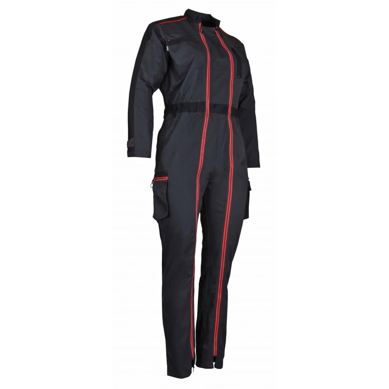 Laissez vous tenter par cette combinaison bicolore femme coupe féminine et col officier avec bavette réglable en hauteur, pour le côté pratique vous avez 1 poche poitrine avec ouverture verticale zippée, 1 poche plaquée fermée par bande auto-agrippante, poches basses dans coutures côtés + passe-mains fermé par pression, 2 poches cuisses à soufflet dont 1 avec fermeture zippée, 1 poche mètre, ceinture élastiquée pour plus de confort.