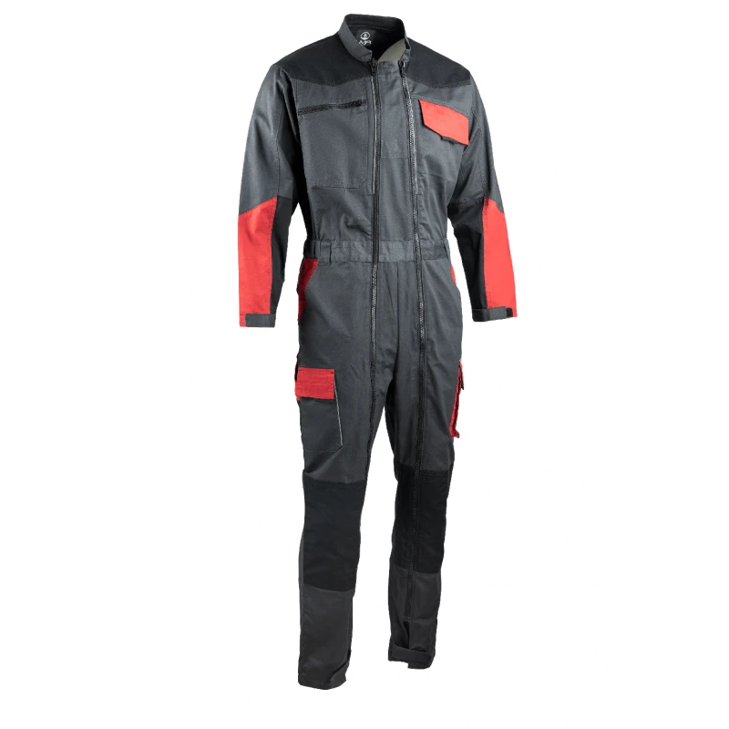 Taille : Taille 1 (XS) – Taille 2 (S) – Taille 3 (M) – Taille 4 (L) – Taille 5 (XL) – Taille 6 (XXL) – Taille 7 (XXXL) – Taille 8 (XXXXL) Longueur entrejambe 84cm Composition : 65% polyester 35% Coton 245g/mÂČ Combinaison de travail homme type rapido bicolore gris rouge Sesame de marque LMA