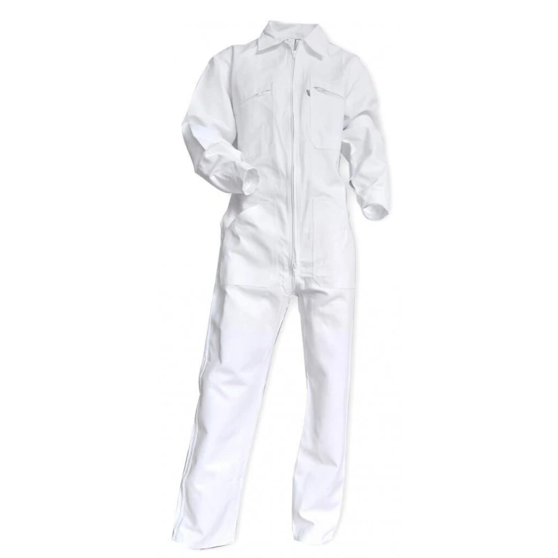 Col chevalière, 2 poches poitrine plaquées zippées, 2 poches basses plaquées à ouverture italienne, 1 poche plaquée arrière et poche mètre curseur, poignets fermés par boutons, 2 passe mains. Combinaison blanche Taille 1 (36/38) Taille 2 (40/42) Taille 3 (44/46) Taille 4 (48/50) Taille 5 (52/54) Taille 6 (56/58) Taille 7 (60/62) Composition : 100% coton sanforisé 330g/m² La combinaison de travail treteau est un vetements de travail peintre en batiment LMA
