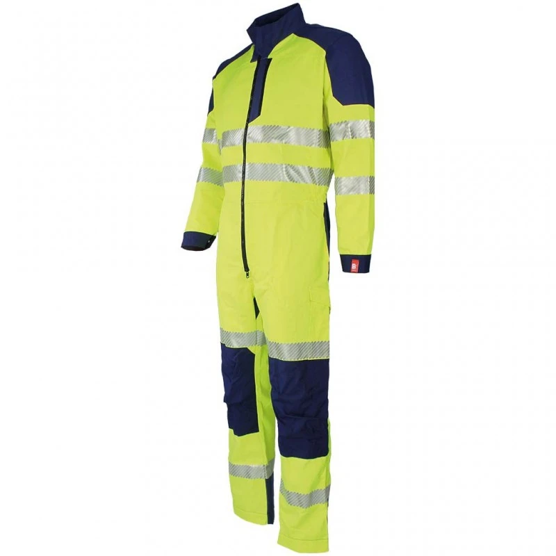 Elle sera parfaite pour votre travail la combinaison homme HV visiofit norme EN ISO 20471 classe 3 avec col montant, fermeture à glissière spirale double curseur, ceinture élastiquée côtés, 1 poche poitrine côté gauche avec fermeture glissière, 2 poches italiennes, 1 poche dos côté droit, 1 poche asymétrique cuisse gauche, double poche mètre sous rabat, bandes rétroréfléchissantes ajourées grises 5 cm résistantes à 50 lavages à 75°C posées sur devant, dos, tour de bras et tour de jambes, poignets rapportés fermés par gripper caché, poches genoux renforcées à ouverture en bas pour l’insertion de genouillères, combinaison adaptée au lavage industriel, entrejambe 80 cm + ourlet de 5 cm