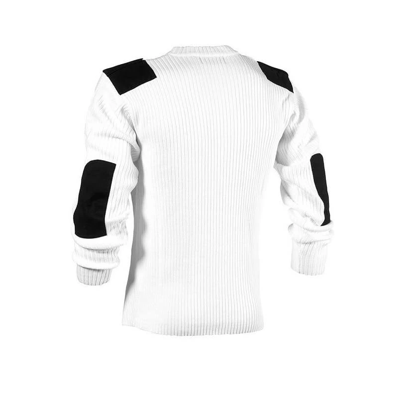 Pièces renforcées au niveau des épaules et des coudes 1 poche sur la poitrine avec 3 poches stylos Taille du S L XL XXL XXXL Coloris : Blanc Composition : 100% acrylique Tissu de renforcement : 100% coton sergé Pull de travail renforcé Wodan collection vetement de travail peintre de marque Herock