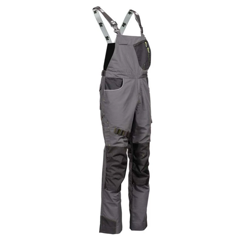 Ceinture réglable par bouton pressions, soufflets d’aisance à la taille 2 poches cavalières, 2 poches arrière et 2 poches latérales pour le rangement. 1 boucle porte outils, 1 poche mètre et 1 poche stylos 2 poches sur bavette dont 1 poche smartphone Bretelles élastiques réglables et fermées par clips. Coloris : Gris/Noir Taille disponible du S au XXXL Composition : En canvas 65% polyester 35% coton 280g/m² Renfort Oxford 100% polyester Salopette de travail modèle 1203 Stampe de la collection vêtements de travail North Ways