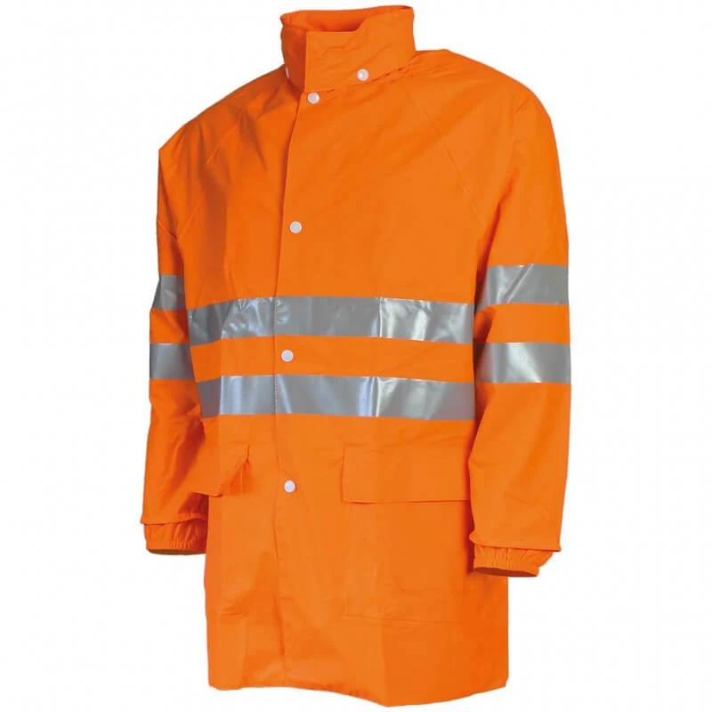 Vous allez pouvoir travailler par tous les temps avec la veste imperméable haute visibilité Sonoflex au norme EN ISO 20471 classe 3 indissociable pour la haute visibilité et norme EN 343 pour les intempéries. Col montant, Bandes rétroréfléchissantes grises de 5 cm posées à double tour de torse et de bras, coutures soudées par haute fréquence, capuche fixe avec lacet de serrage enroulée dans le col sous rabat fermé par 3 boutons pour une protection optimale, fermeture à glissière spirale, 2 poches basses avec rabats de poches plus larges (pour éviter que le rabat tombe dans la poche, dos ventilé, manches raglan, poignets coupe vent avec élastique. la veste est plus longue pour couvrir le dos même quand le porteur se penche.